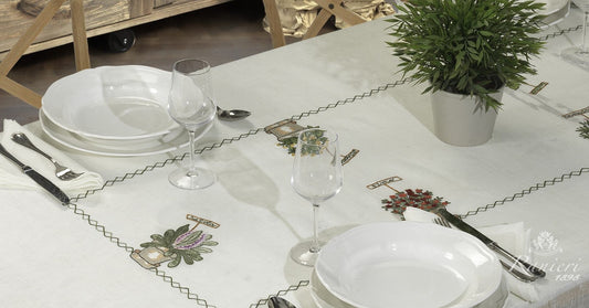 Tovaglia in lino 100% art aromatica con tovaglioli