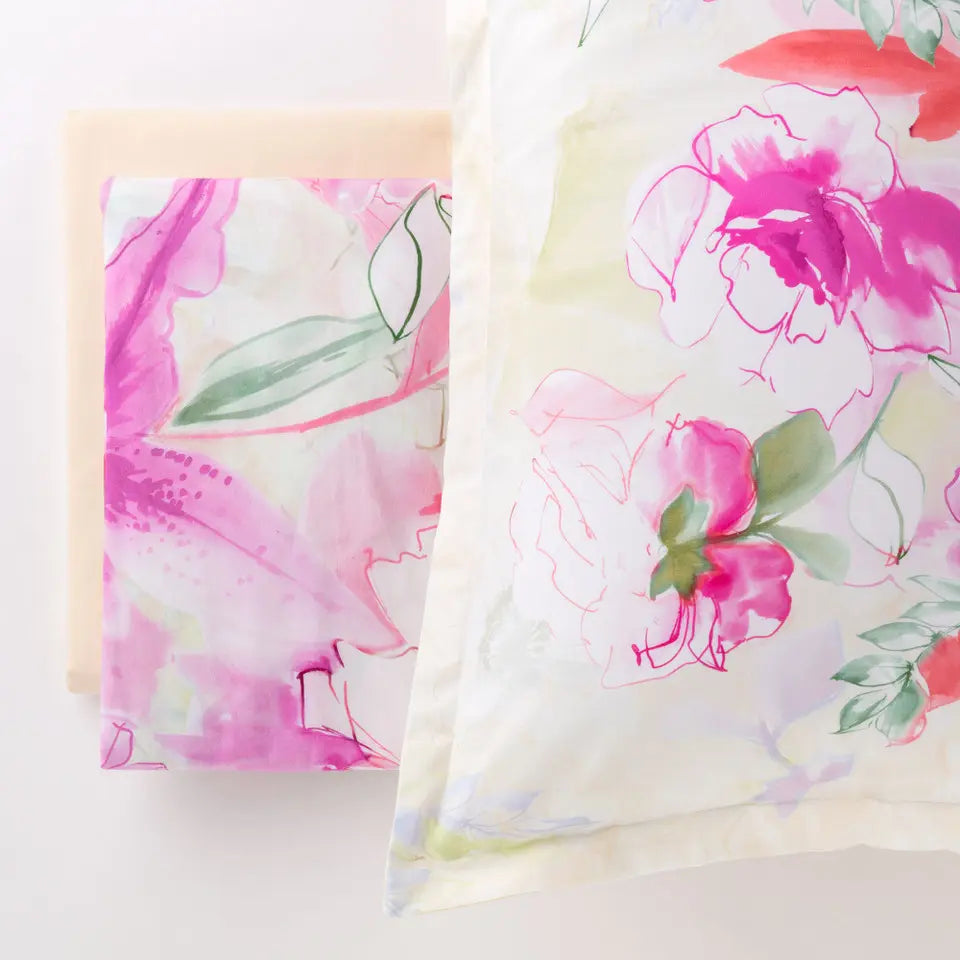 Rivivi la freschezza della natura nella tua camera da letto con il completo lenzuolo copriletto in percalle Fleur. La fantasia floreale stampata ad alta definizione trasforma il tuo letto in un giardino vibrante. Il morbido cotone e il design bilanciato offrono comfort ed eleganza, perfetto per un riposo avvolgente.