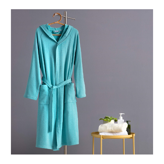L'accappatoio "Wimbledon" della linea "Riviera" è un capo in microspugna di cotone, caratterizzato da leggerezza, compattezza e rapida asciugatura, ideale per il viaggio, la piscina o la palestra. È un prodotto a basso ingombro, disponibile in vari colori, con cappuccio, tasche applicate e cintura rimovibile.
