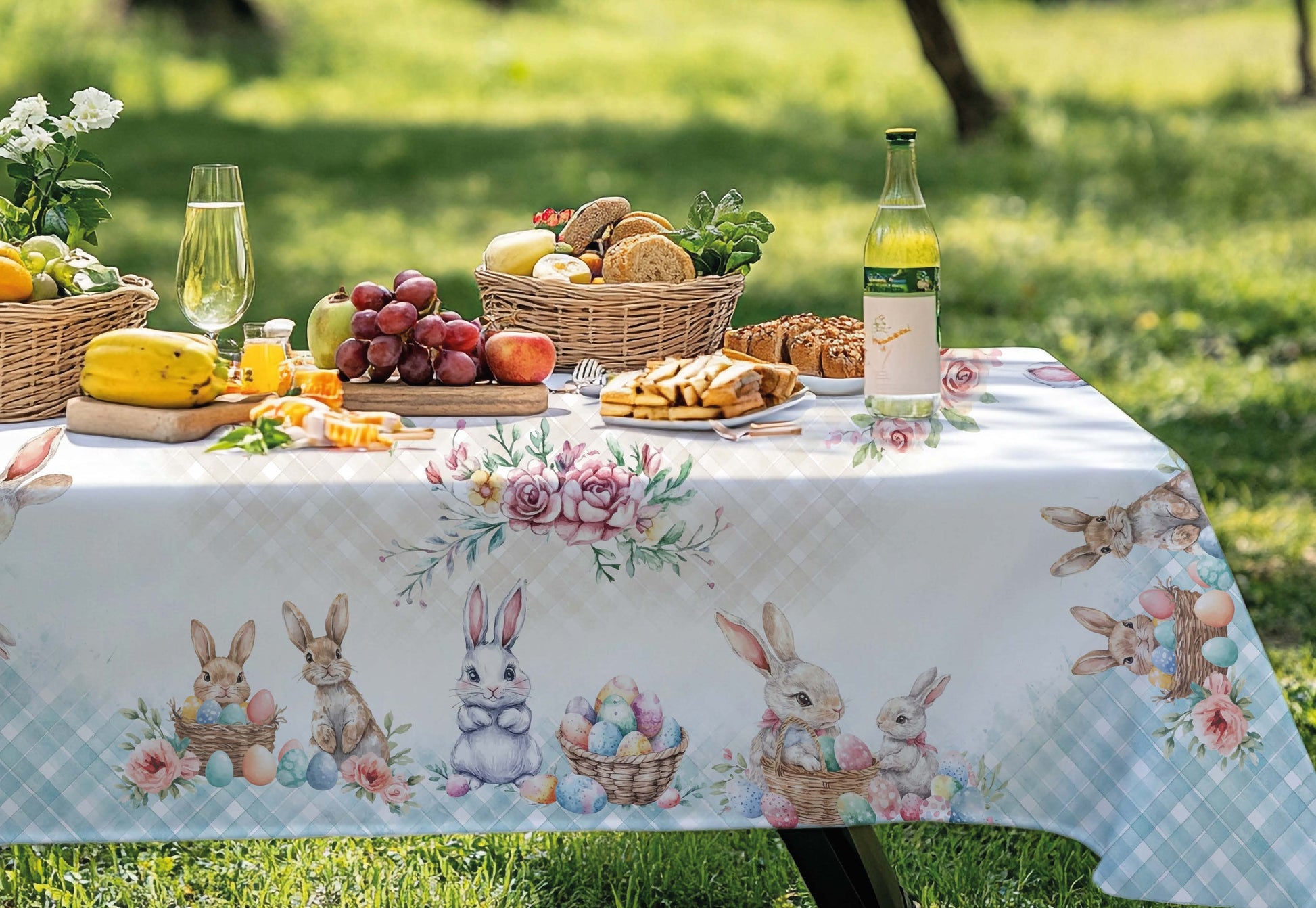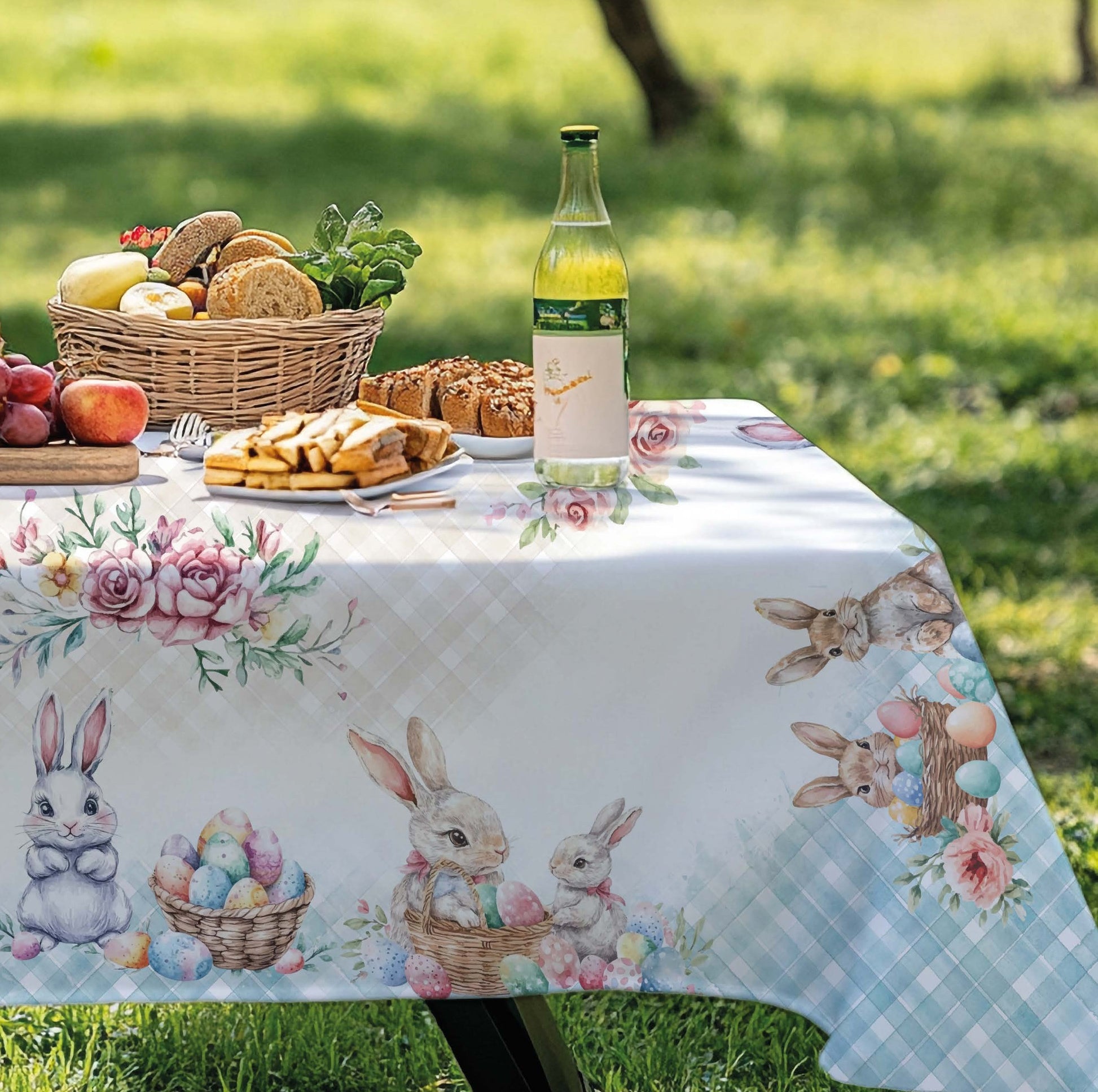 Tovaglia di Pasqua in tessuto di qualità, dimensioni 270x140 cm. Design colorato e festivo che porta allegria al vostro tavolo durante le feste pasquali.