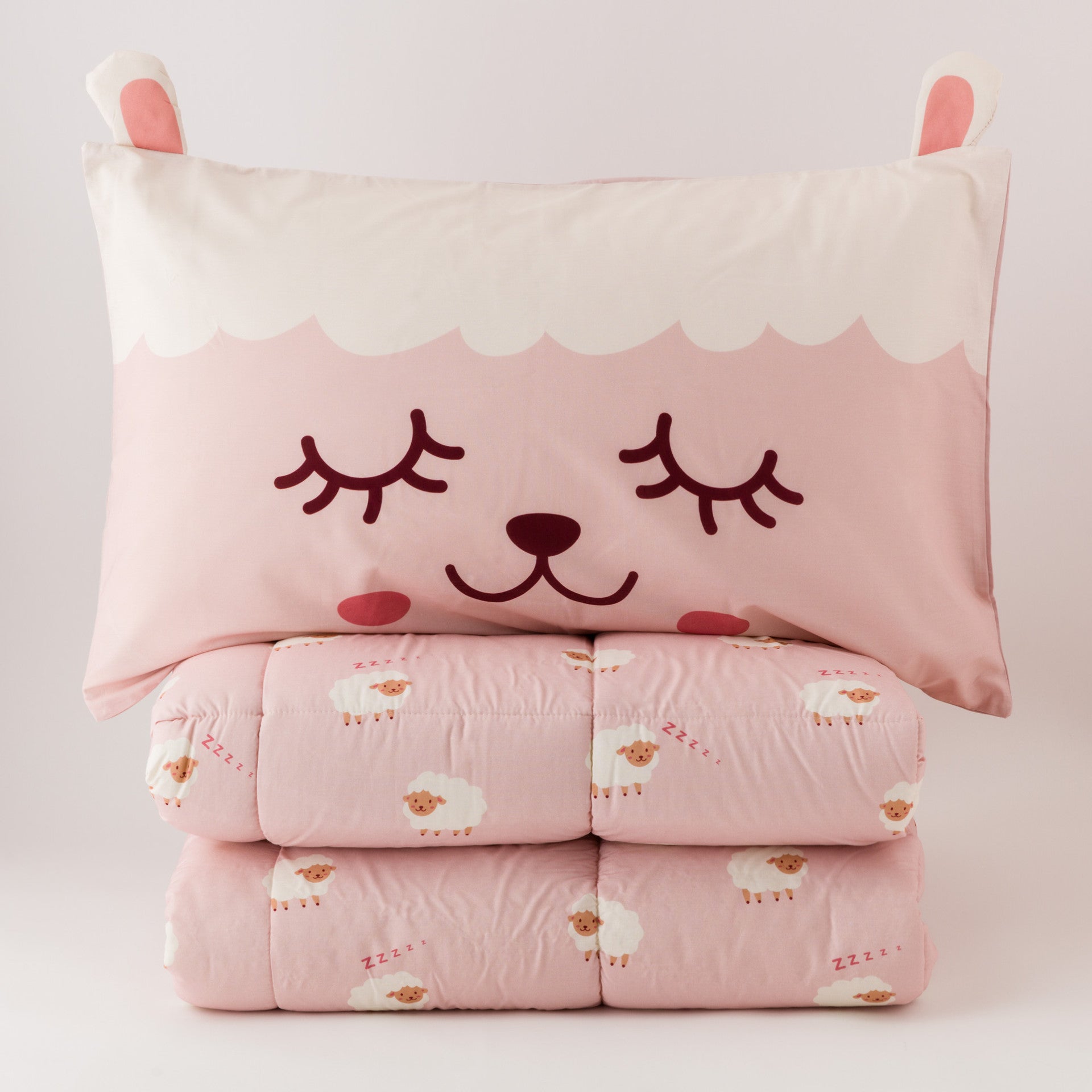 Nel formato singolo 180x270 cm, si abbina perfettamente ai letti di bambini e ragazzi, completata dalla federa piazzata 50x80 cm. Un abbraccio di comfort e fantasia ogni notte.