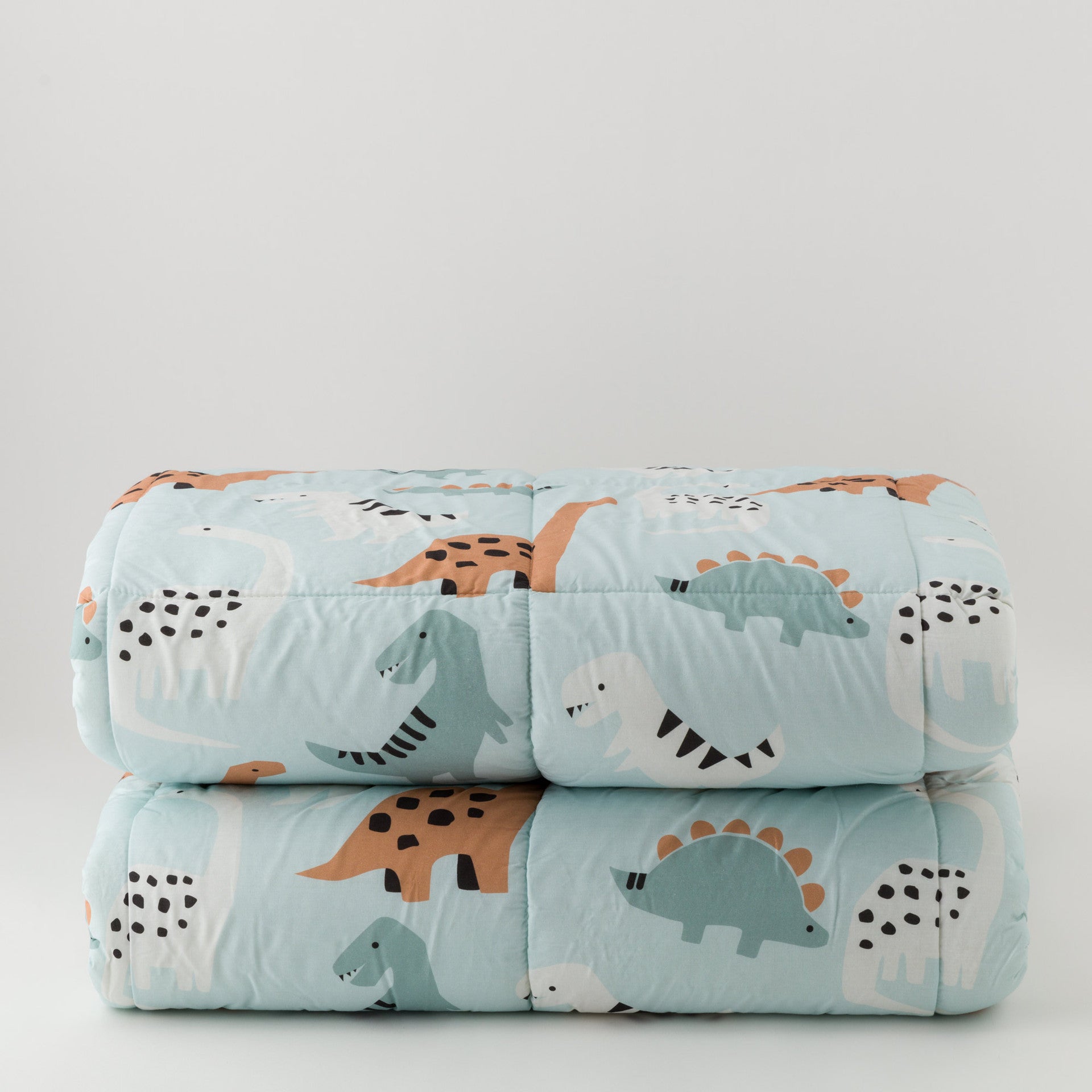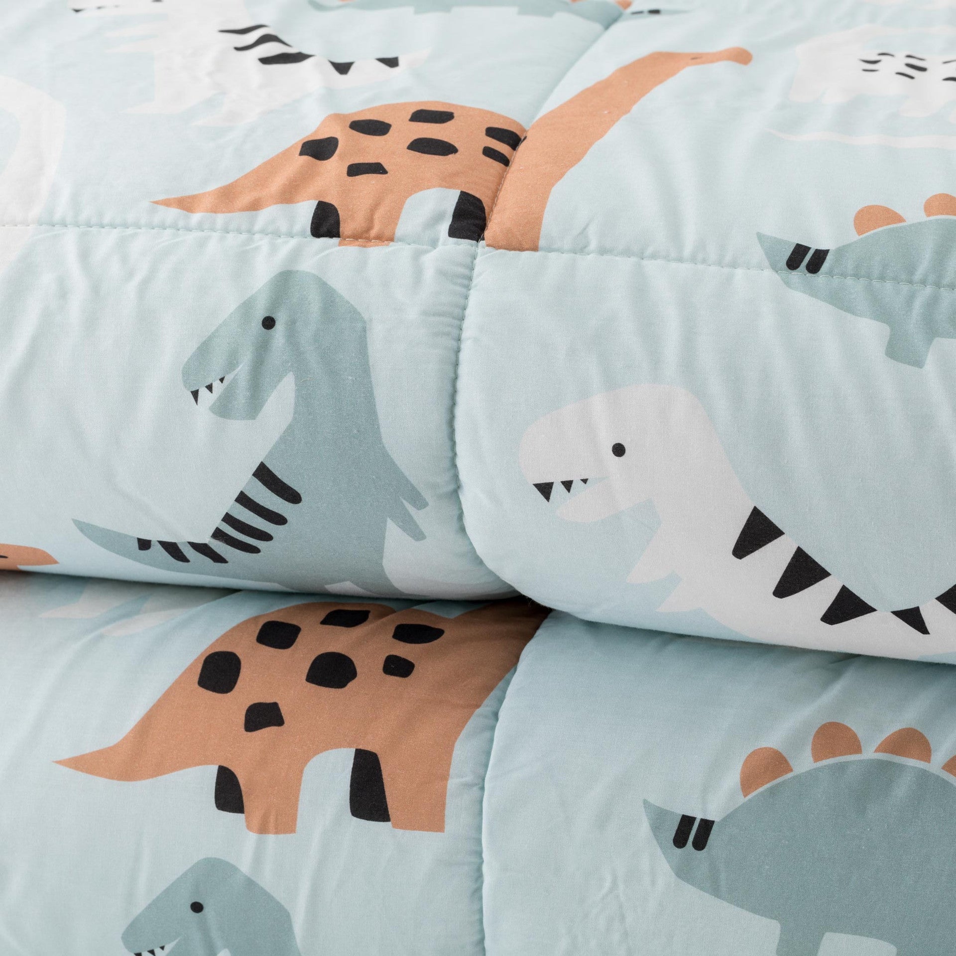 Benvenuti nel mondo dei dino della trapunta Arlo! Dinosauri buffi e colori pastello creano un'atmosfera magica e rassicurante per il riposo dei piccoli esploratori. Confezionata in percalle di cotone puro stampato, regala una sensazione morbida e fresca sulla pelle durante tutto l'anno. L'imbottitura da 350 gsm avvolge in calore e morbidezza, mentre la trapuntatura a quadri con cornice e gli angoli arrotondati garantiscono solidità e eleganza. Su uno sfondo azzurro cielo danzano simpatici dinosauri in sabbia, panna e verde salvia, trasformando ogni letto in un'avventura dove i sogni prendono vita con tenerezza e allegria.