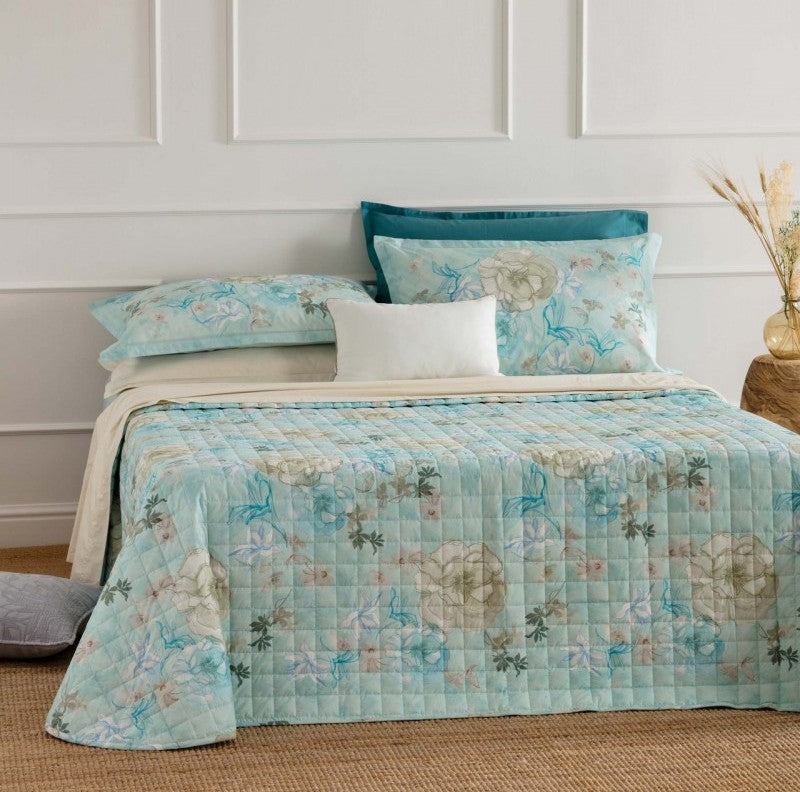Il trapuntino in percalle Amouage è perfetto per chi cerca freschezza e vitalità nella propria camera da letto. 100% cotone con stampa digitale ad alta definizione di un giardino fiorito, garantisce un angolo di natura rigogliosa. L'imbottitura in poliestere da 120 GSM lo rende leggero e confortevole per le mezze stagioni.