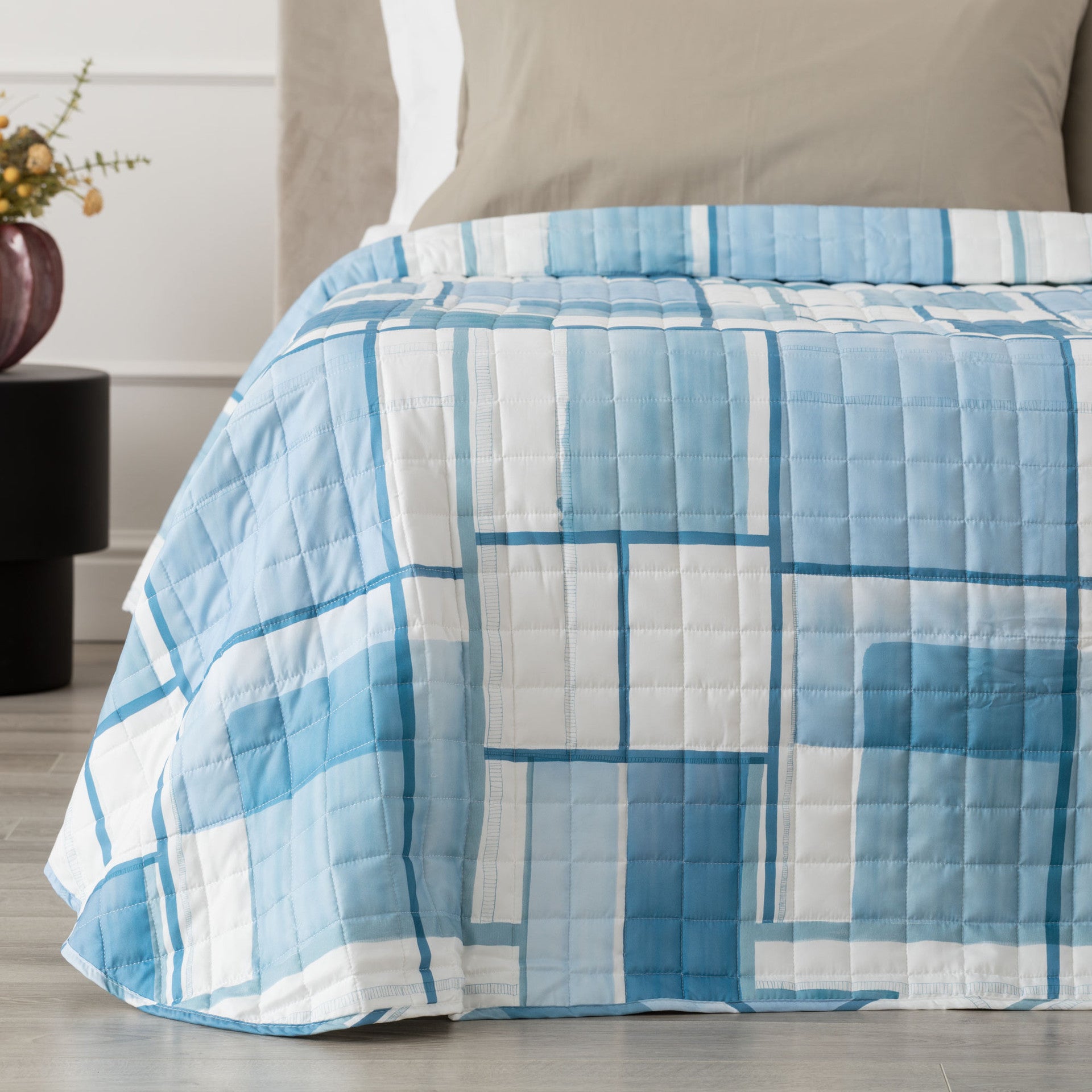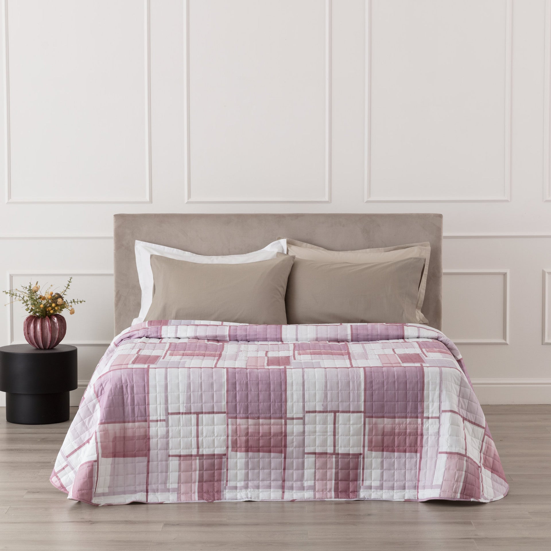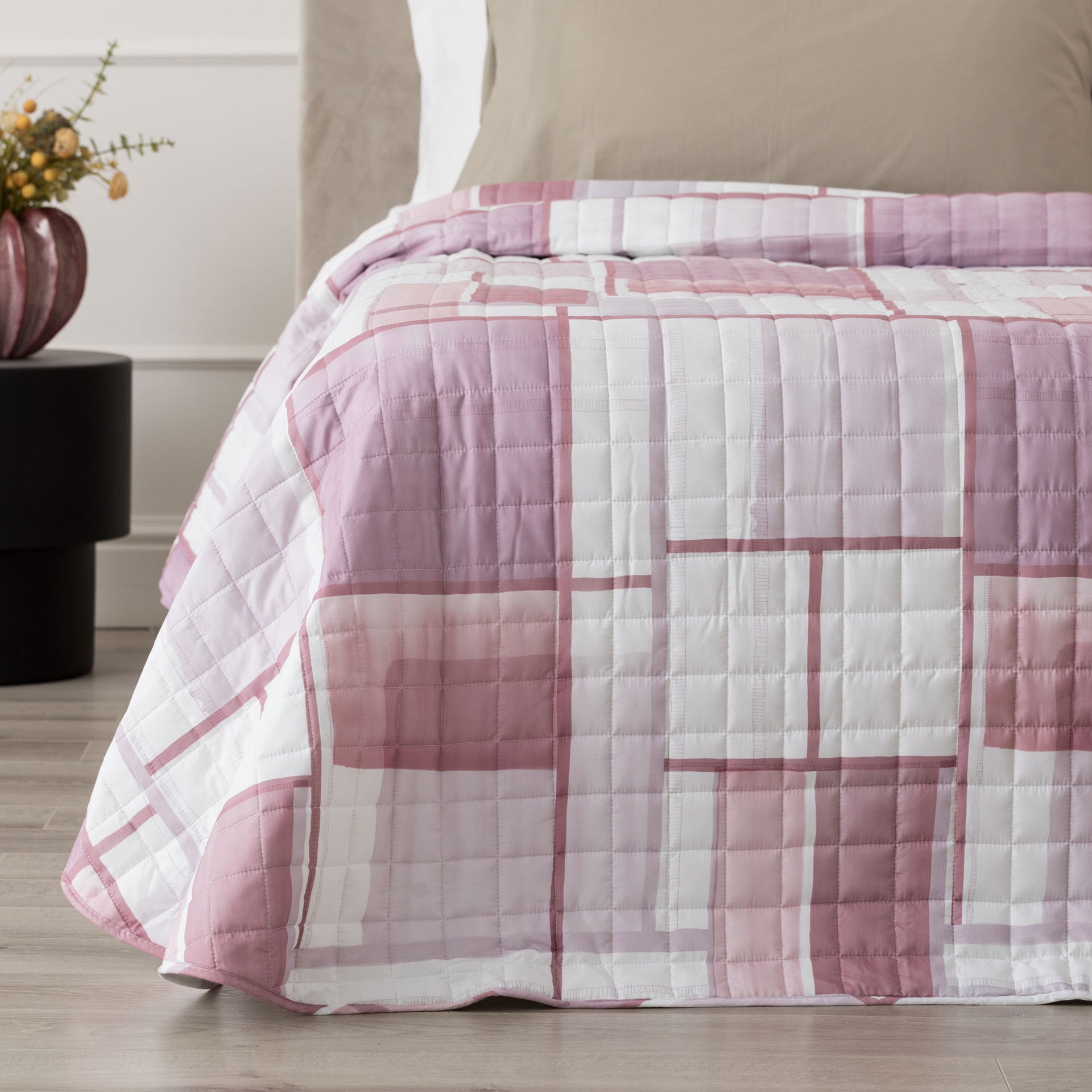 Trapuntino Juri in microfibra a stampa digitale che interpreta lo stile contemporaneo con un disegno geometrico morbido e dinamico. Le sovrapposizioni cromatiche leggere donano profondità al letto senza appesantire l'ambiente, integrandosi facilmente sia in camere minimal sia in spazi più decorativi. Fronte in microfibra 100% poliestere stampata con retro in microfibra tinta unita coordinata e imbottitura in poliestere da 120 gsm. La combinazione garantisce leggerezza, praticità e comfort quotidiano. La trapuntatura a quadri da 5 cm con angoli tondi assicura una distribuzione uniforme dell'imbottitura e una caduta ordinata, mentre il tessuto risulta piacevole al tatto e semplice da gestire nel lavaggio.