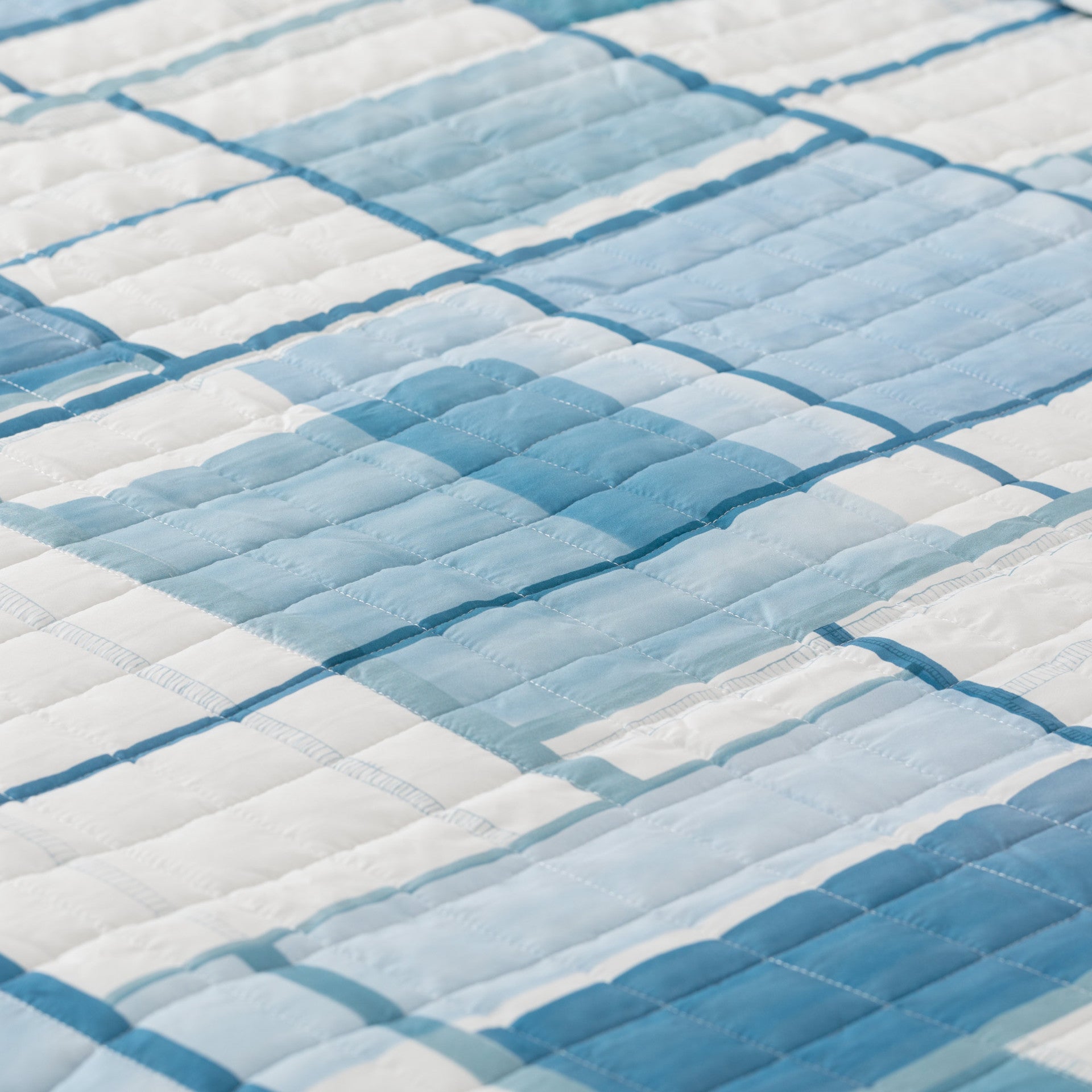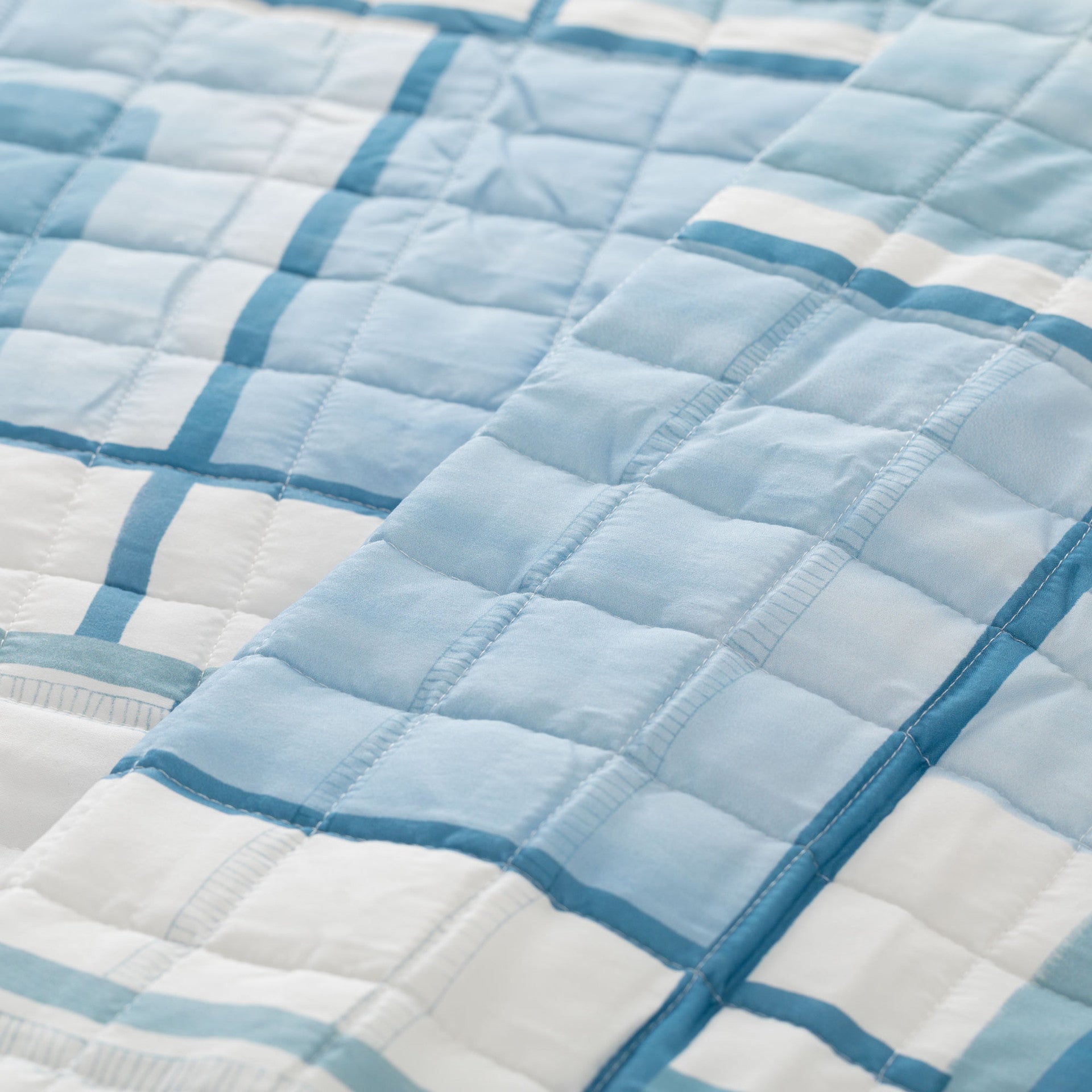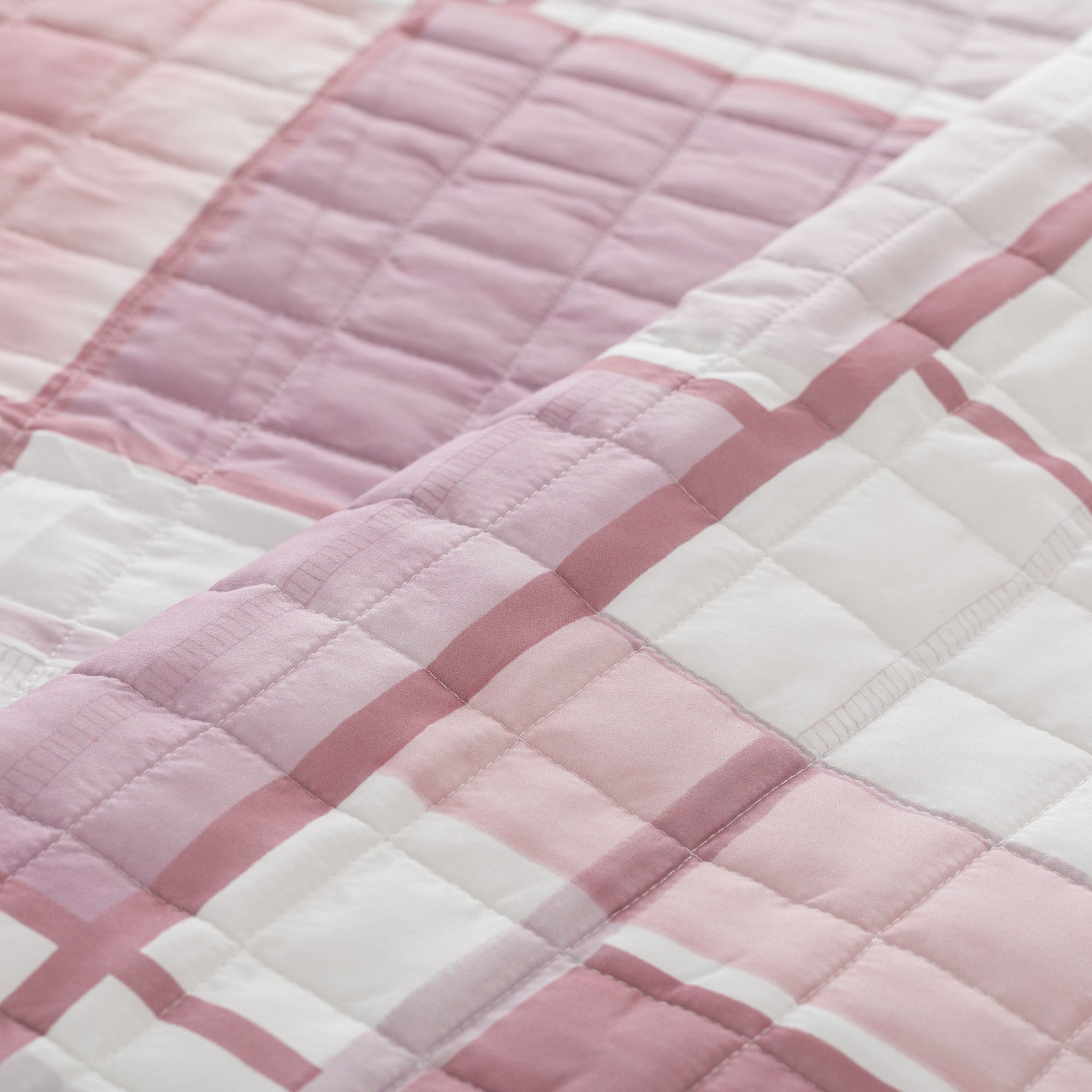 Trapuntino Juri in microfibra a stampa digitale che interpreta lo stile contemporaneo con un disegno geometrico morbido e dinamico. Le sovrapposizioni cromatiche leggere donano profondità al letto senza appesantire l'ambiente, integrandosi facilmente sia in camere minimal sia in spazi più decorativi. Fronte in microfibra 100% poliestere stampata con retro in microfibra tinta unita coordinata e imbottitura in poliestere da 120 gsm. La combinazione garantisce leggerezza, praticità e comfort quotidiano. La trapuntatura a quadri da 5 cm con angoli tondi assicura una distribuzione uniforme dell'imbottitura e una caduta ordinata, mentre il tessuto risulta piacevole al tatto e semplice da gestire nel lavaggio.